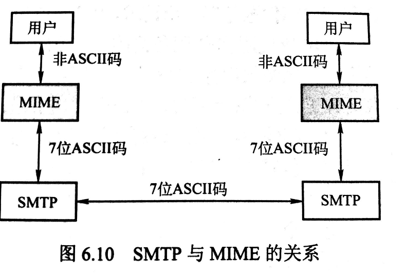 MIME:多用途网络邮件扩充。SMTP只能传送一定长度的ASCII码,定义了传送非ASCII码的编码规则