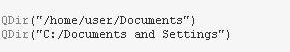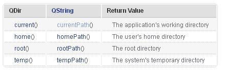 可以使用一些静态函数来访问指定的路径,这些函数返回一个QDir对象: