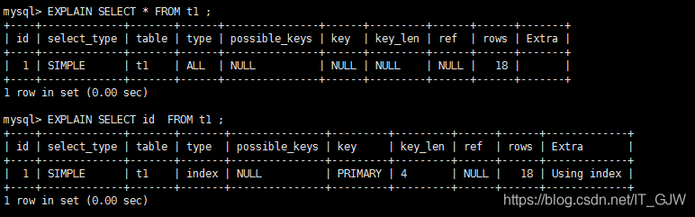 使用explain + sql语句可以得到该条sql语句的执行计划,具体信息如下