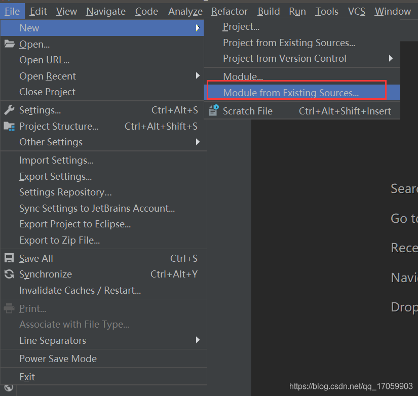 1.选择 FIle -> NEW -> Module from Existing Sources ...
