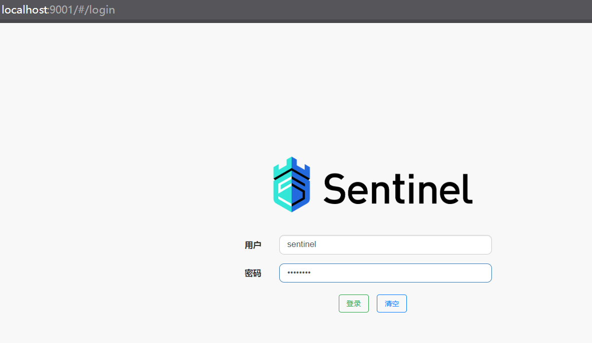 默认用户密码为 sentinel / sentinel