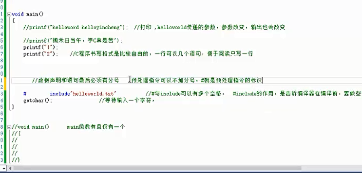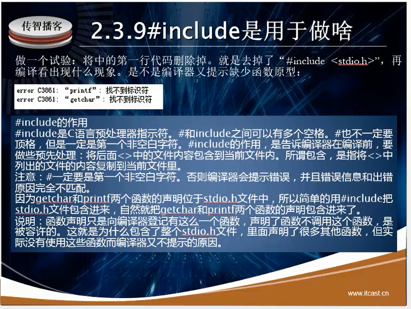 (getchar和printf两个函数的声明位于stdio.h文件中)