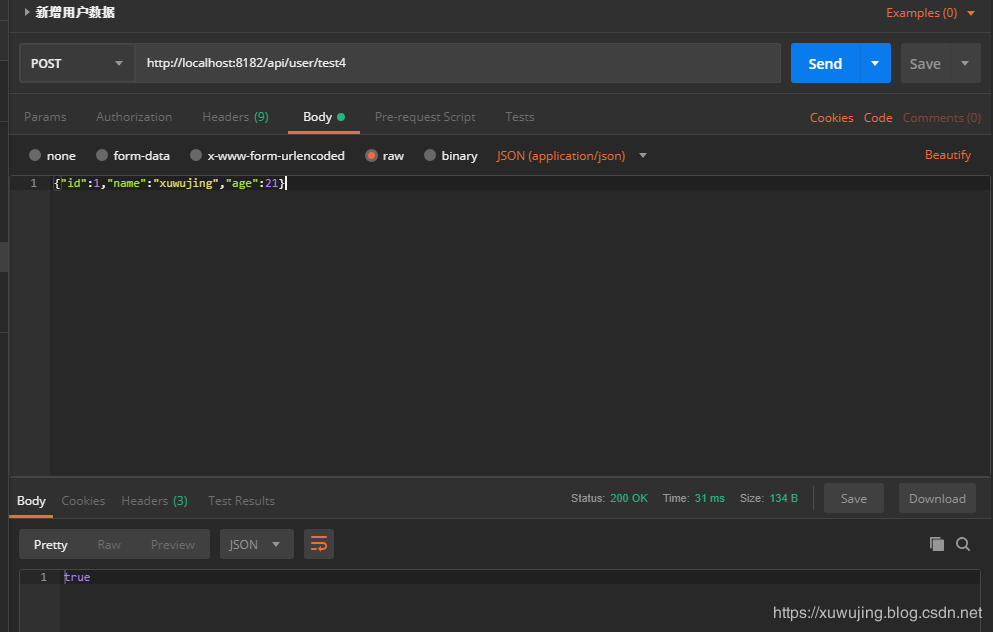 我们在启动程序之后,来进行上述的几个示例测试,这里的测试示例分别对应上述的使用示例,有的示例需要测试两边以上才能验证事物是否能够生效!这里我们使用Postman进行测试!