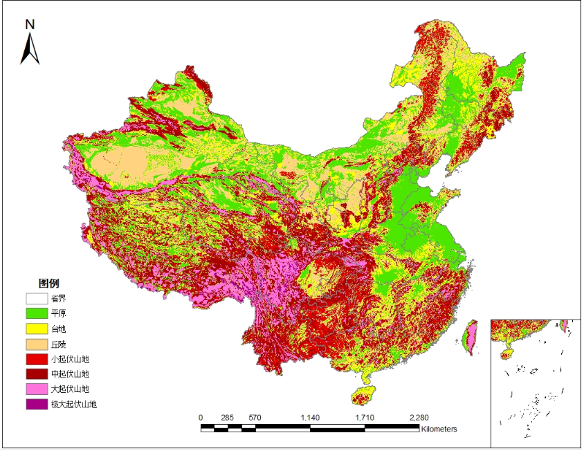 全国DEM 1km、500m和250m数据(以SRTM 90m为基准制作)
