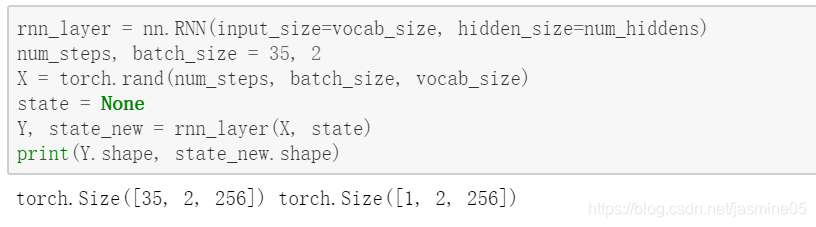 现在我们构造一个nn.RNN实例,并用一个简单的例子来看一下输出的形状: