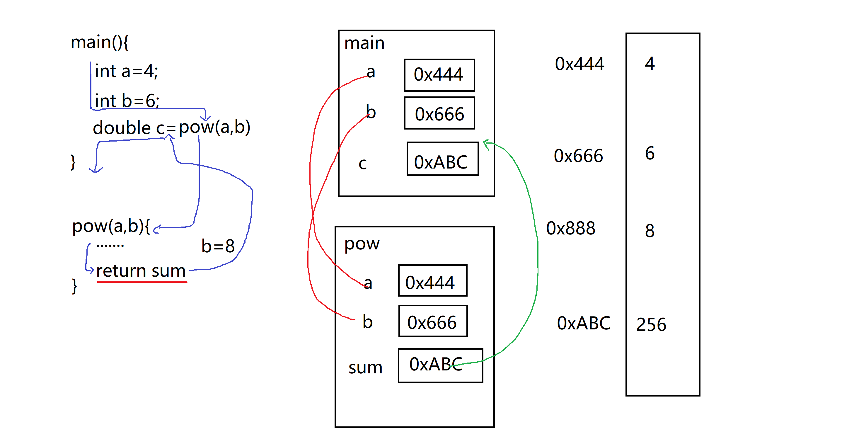- 实际参数-实参:就是在调用函数的时候,给函数传递的数据(常量,变量)叫做实参,