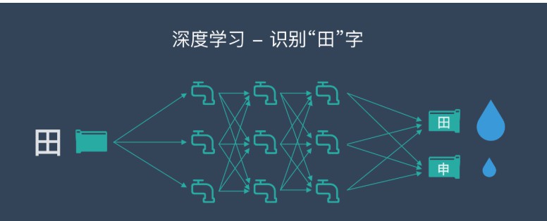 如此反复进行,知道所有汉字对应的水流都可以按照期望的方式流过整个水管网络。这时,我们就说,这个水管网络是一个训练好的深度学习模型了。当大量汉字被这个管道网络处理,所有阀门都调节到位后,整套水管网络就可以用来识别汉字了。这时,我们可以把调节好的所有阀门都“焊死”,静候新的水流到来。