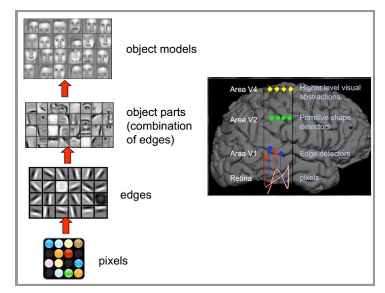 对于不同的物体,人类视觉也是通过这样逐层分级,来进行认知的: