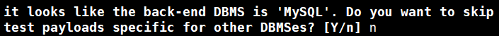 这时出现了第一个交互请求:工具发现该网站数据库好像是MySQL,是否还要扫描其他类型的数据库,我们就不探测了,N
