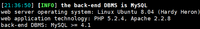 探测出后台数据库为mysql,系统是ubuntu 8.04,Web服务器应用软件是php和Apache