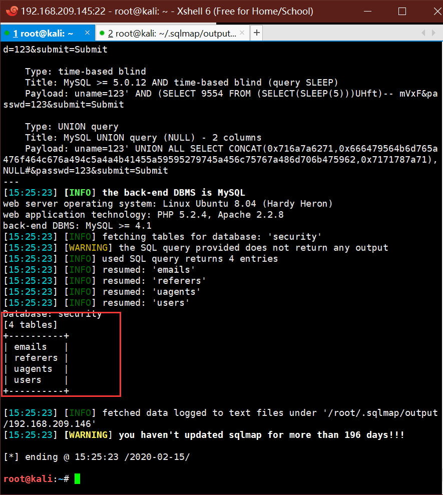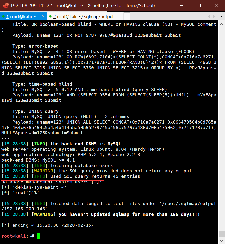 但是千万不要--update,全网都在出错,最好先升级一下源,然后重新安装:apt-get install sqlmap