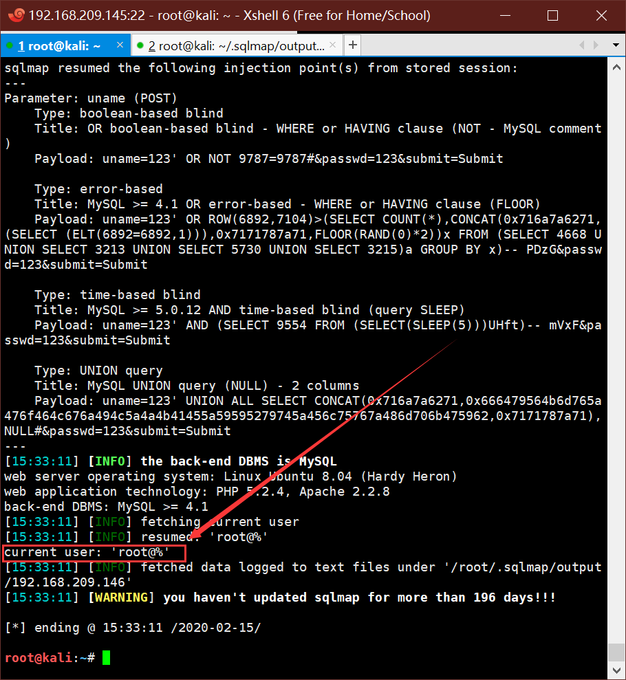 这里要是嫌弃你的sqlmap版本太老旧可以升级一下