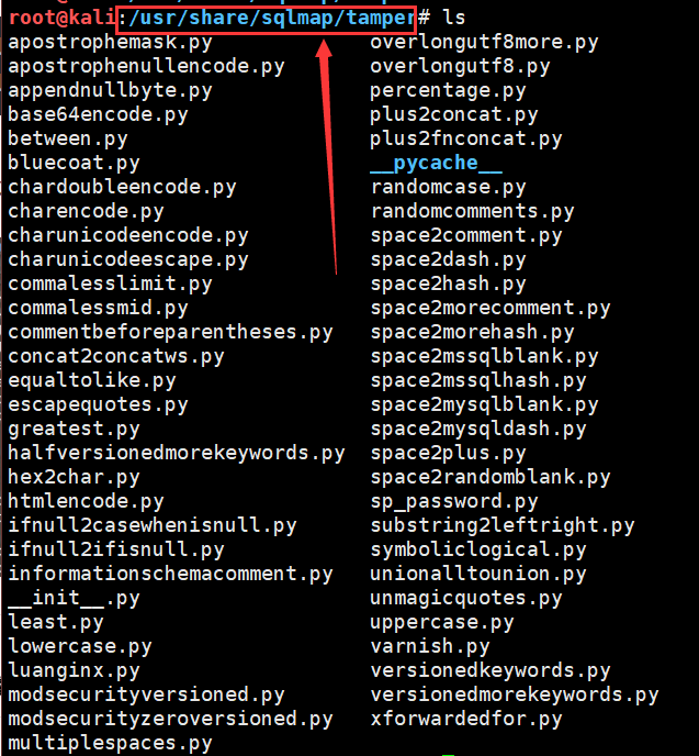 Sqlmap在默认情况下除了适用CHAR()函数防止出现单引号,没有对注入的数据进行修改。我们可以使用--tamper参数对数据进行修改来绕过WAF等设备,其中的大部分脚本主要用正则模块替换攻击载荷字符编码的方式尝试绕过WAF的检测规则。Sqlmap目前官方提供59个绕过脚本(1.4.2 version)。