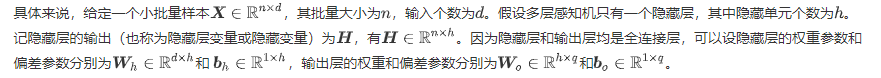 多层感知机是含有至少一个隐藏层的由全连接层组成的神经网络,且每个隐藏层的输出通过激活函数进行变换。多层感知机的层数和各隐藏层中隐藏单元个数都是超参数。以单隐藏层为例并沿用本节之前定义的符号,多层感知机按以下方式计算输出: