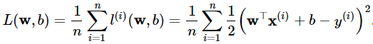 在模型训练中,我们需要衡量价格预测值与真实值之间的误差。通常我们会选取一个非负函数作为误差,其数值越小表示误差越小。一个常用的函数就是均方误差。 单个样本误差的表达式为: