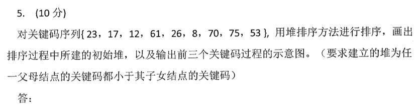 D D(不懂) 判别以下序列是否是堆?如果不是,将它调整为最大堆。 { 12, 70, 33, 65, 24, 56, 48, 92, 86, 33 } 最大堆为 92, 86, 56, 70, 33, 33, 48, 65, 12, 24 来源:CSDN作者:什么你竟然不会敲代码链接:https://blog.csdn.net/m0_37302219/article/details/104308964 标签 大数据 数据结构