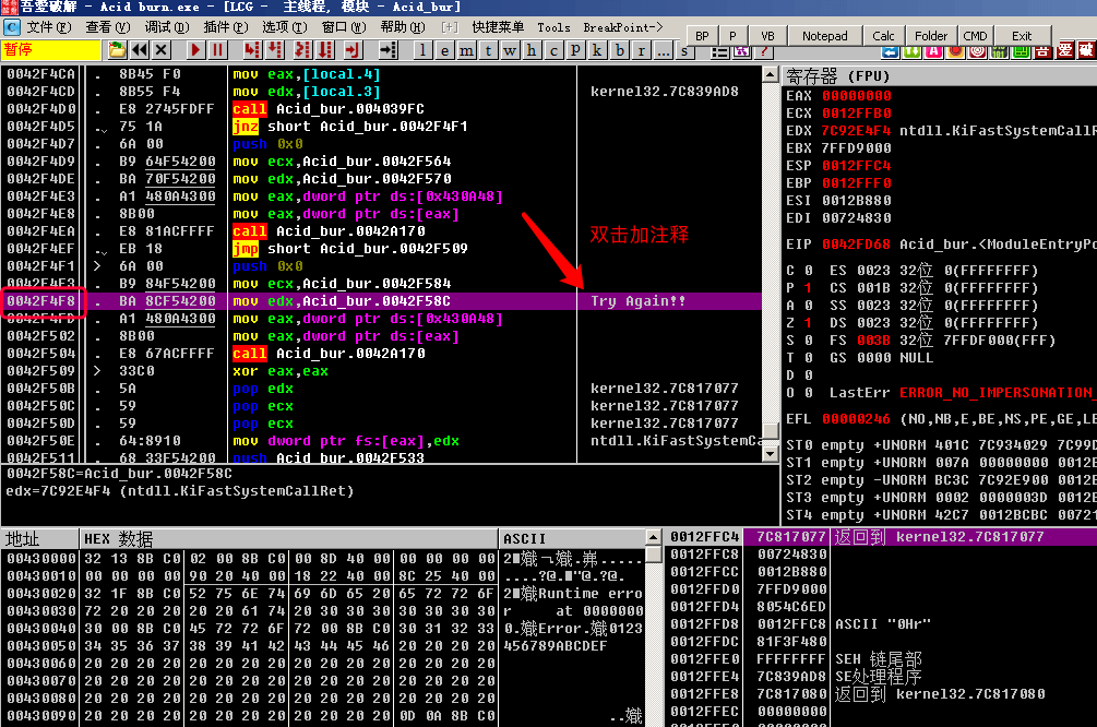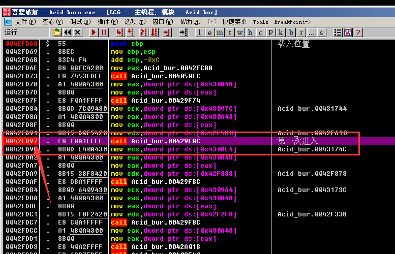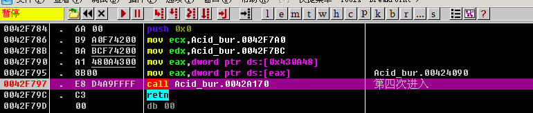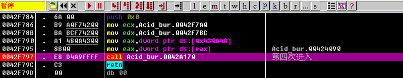 然后我们直接按F7单步步入进去, F7进入call Acid_bur.0042A170