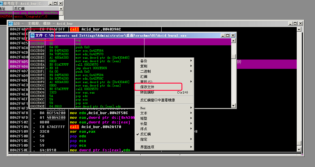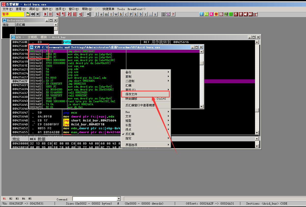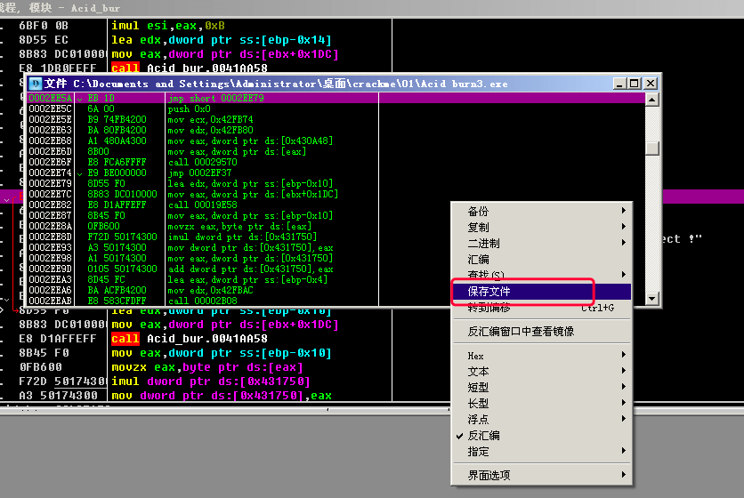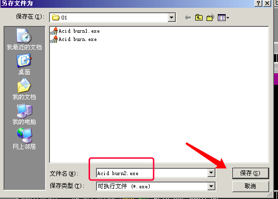 然后自动跳到D窗口,右键->保存文件, 将程序重命名为Acid_burn2.exe