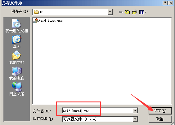 然后自动跳到D窗口,右键->保存文件, 将程序重命名为Acid_burn1.exe
