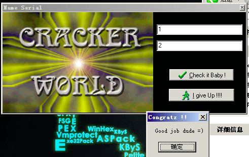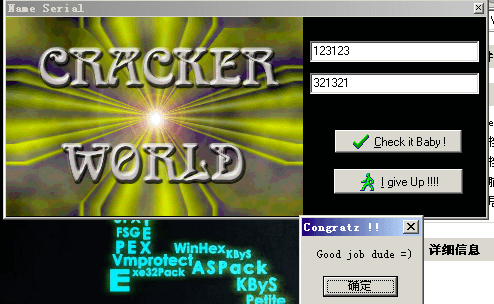 F3 加载解决Serial之后保存的的Acid burn2.exe, F9直接运行, 然后随便输入, 点击Check it Baby!, 此时的错误弹框先不要关