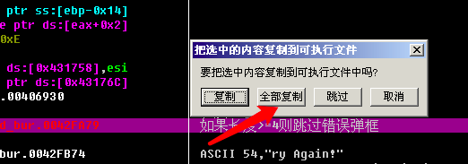 修改完毕后我们右键->复制到可执行文件->所有修改->全部复制