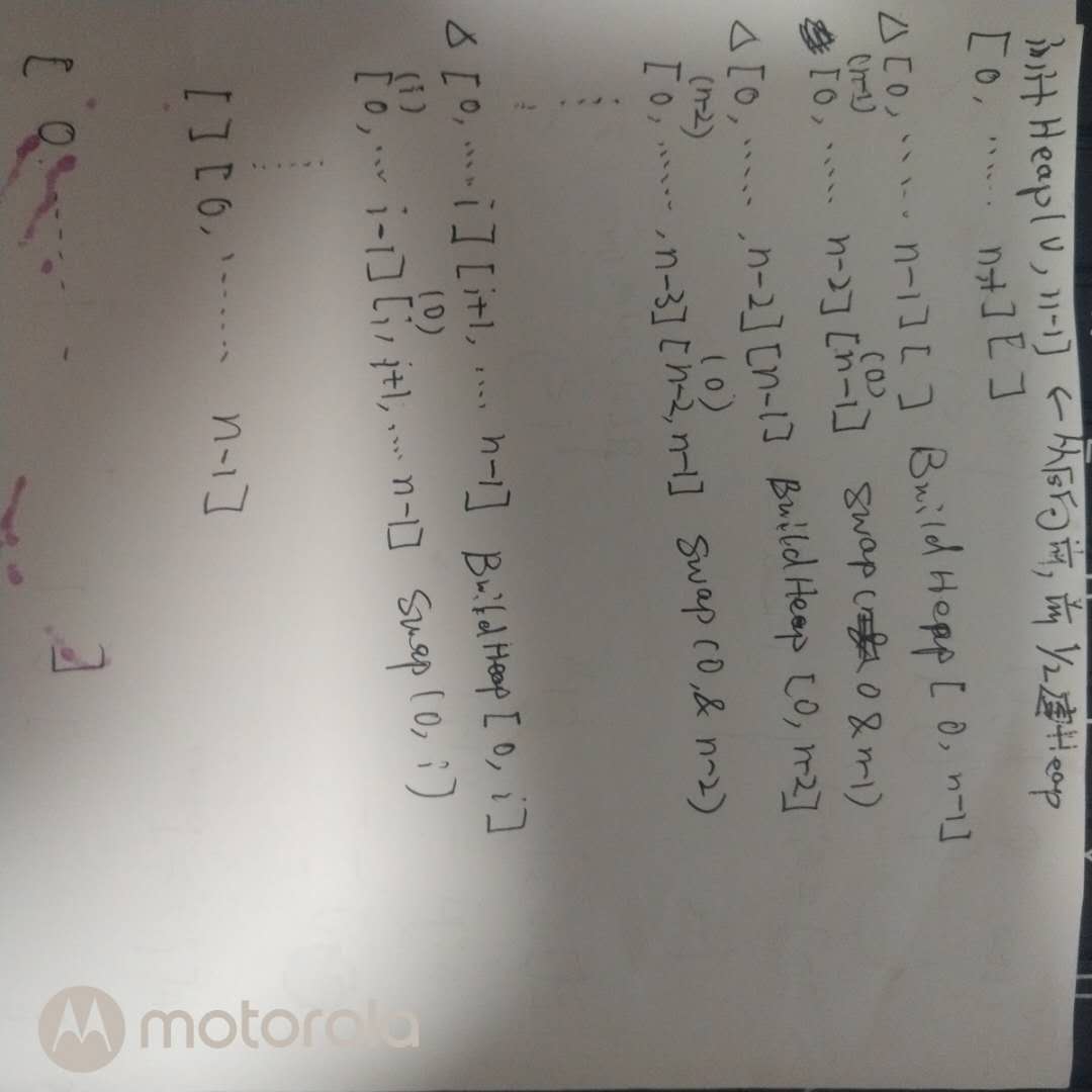 (1) 先 将 初始 A[ 1... n] 建成 一 个大 根 堆, 此 堆 为 初始 的 无序 区。