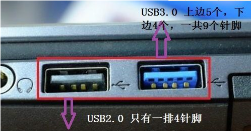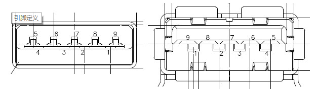 1-4管脚为兼容usb2.0;5-9为usb3.0输出;