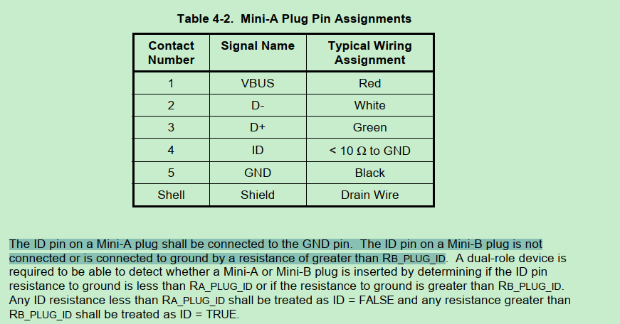 Mini usb和micro usb在usb2.0 基础上引入了第五根线:ID检测线;用于OTG功能;