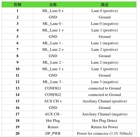 下图是DP的管脚,上面的phy管脚和dp管脚按照一定关系连接即可;