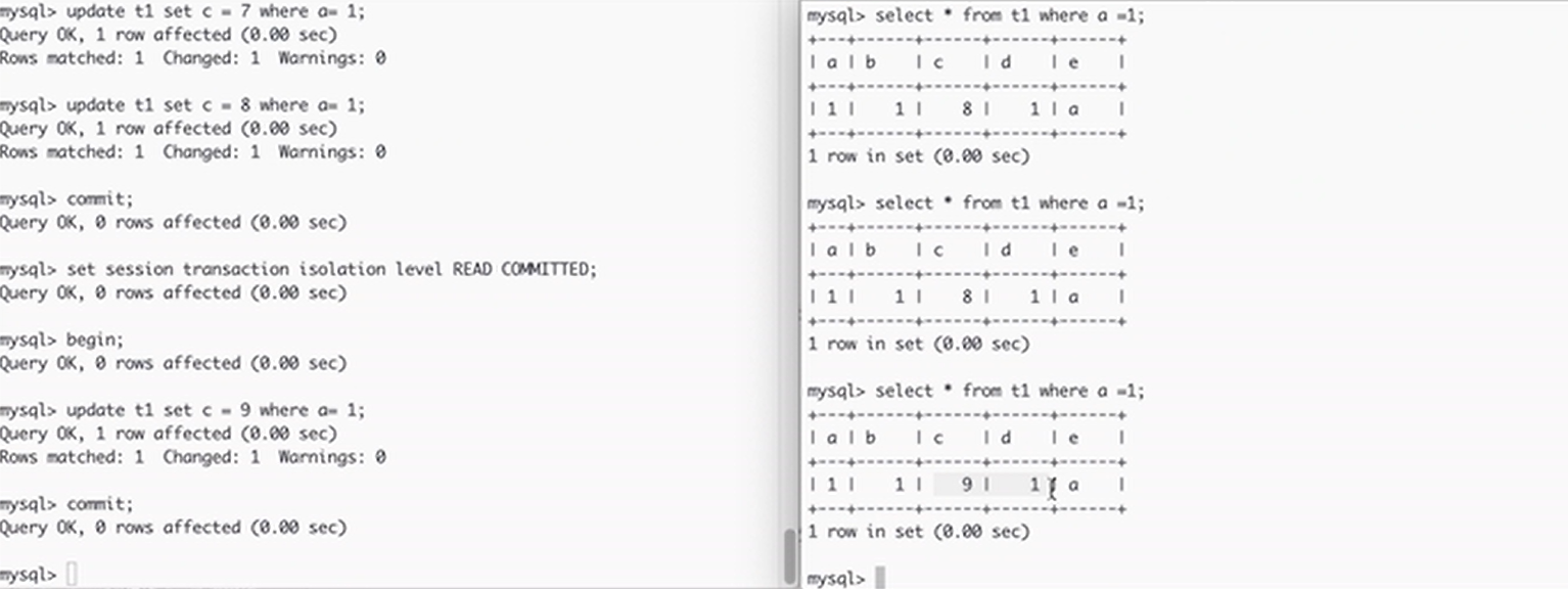 右边的第一次读和第二次读的不一样。这就是不可重复读。