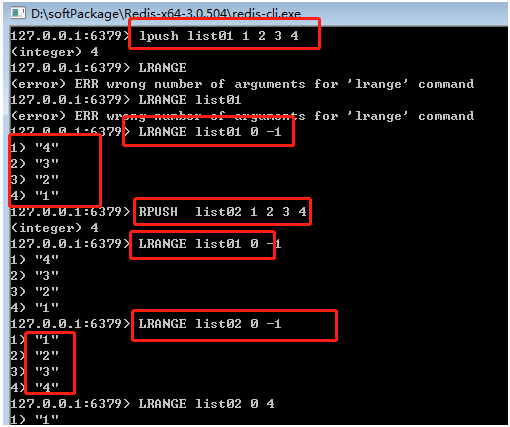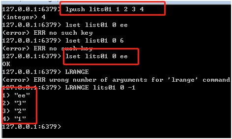 lrange key number1 number2 |