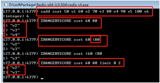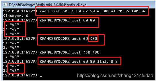 zrangebyscore key score1 score2 |