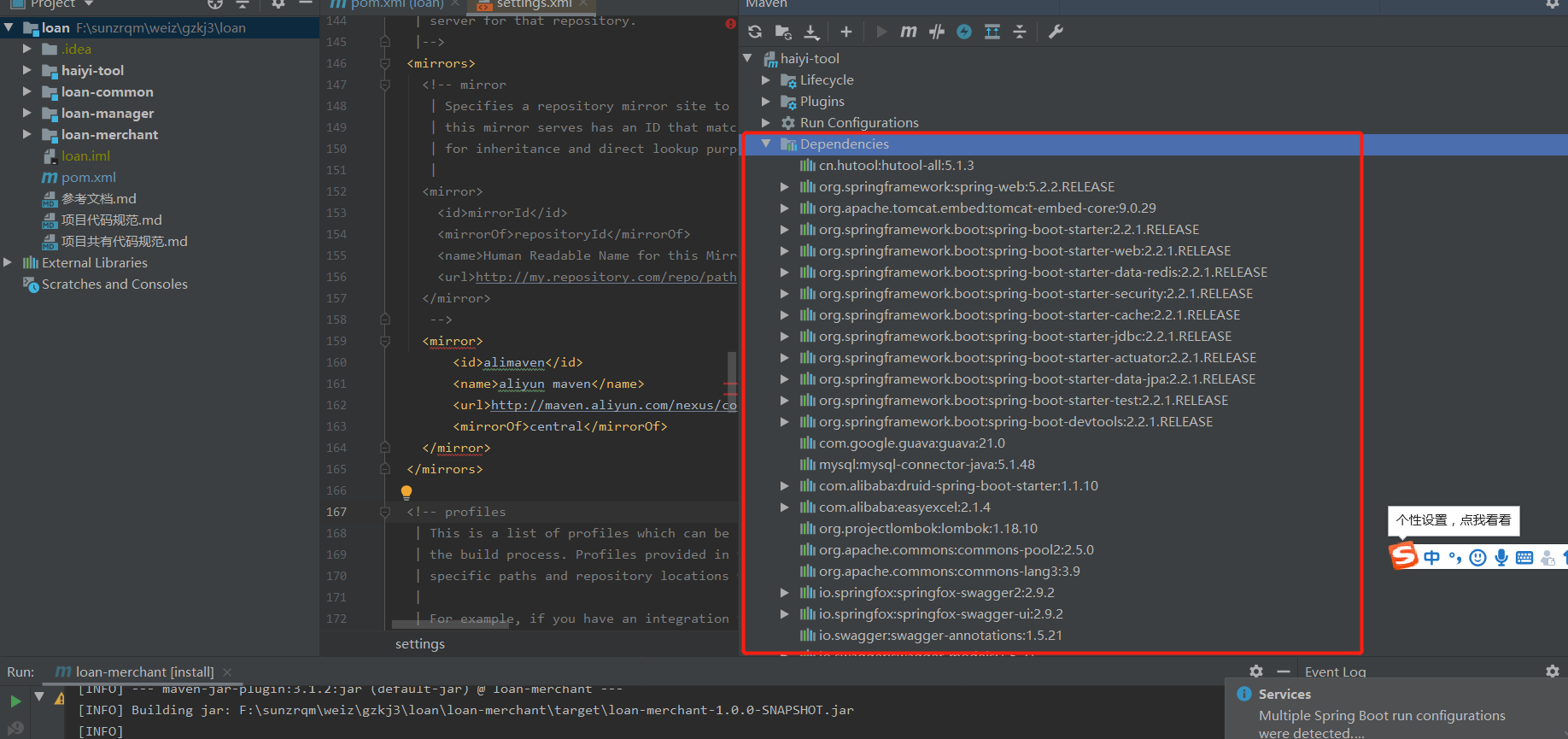 idea里面maven的settings这个标签要注意空格等。 解决这个和其他对应提示问题后运行正常: 来源:CSDN作者:嘟嘟呆呆链接:https://blog.csdn.net/sun_hm/article/details/104345142 标签 仓库