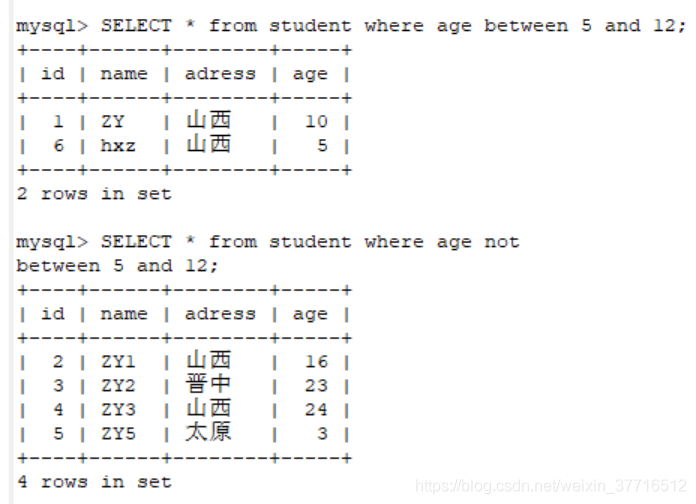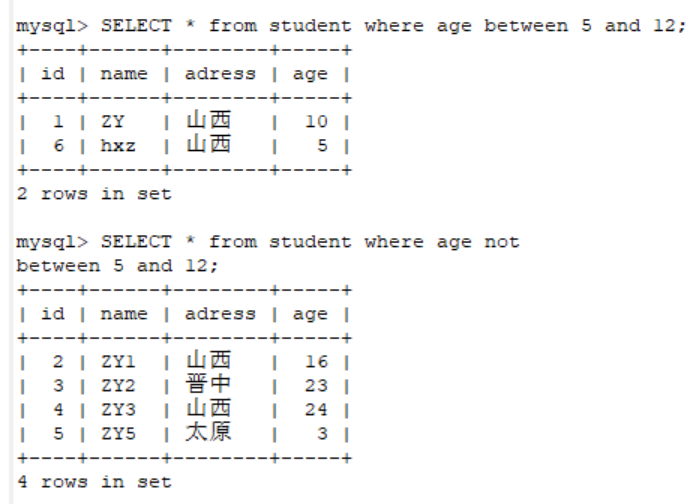 注意:between在不同数据库里可能包含括两个测试值的,也可能不包含。