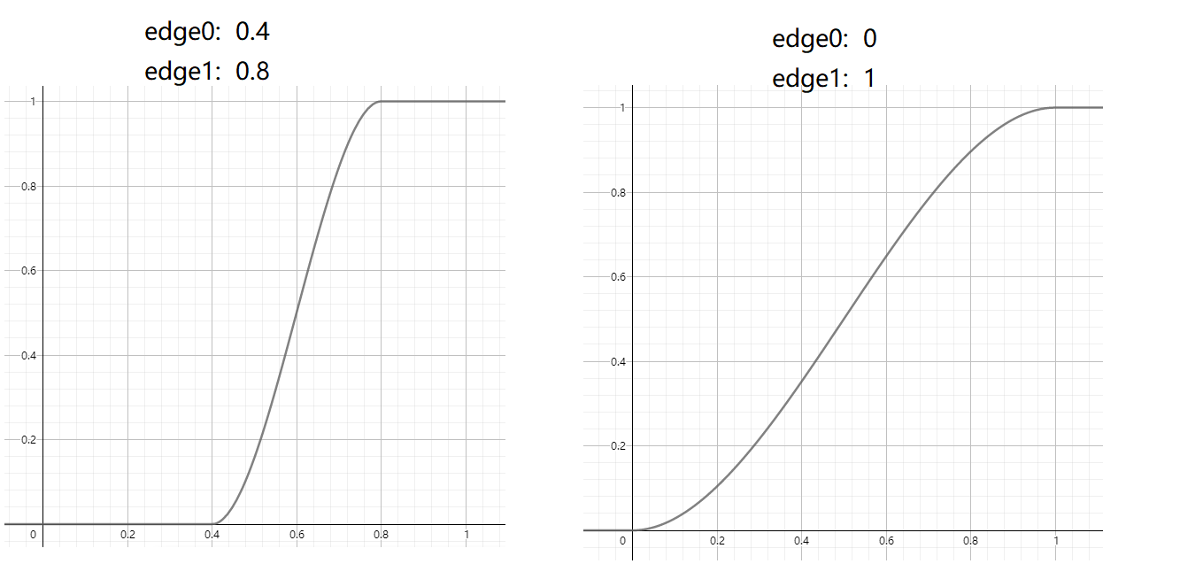 考虑一下 y = smoothstep(edge0, edge1, x) 的输出结果: