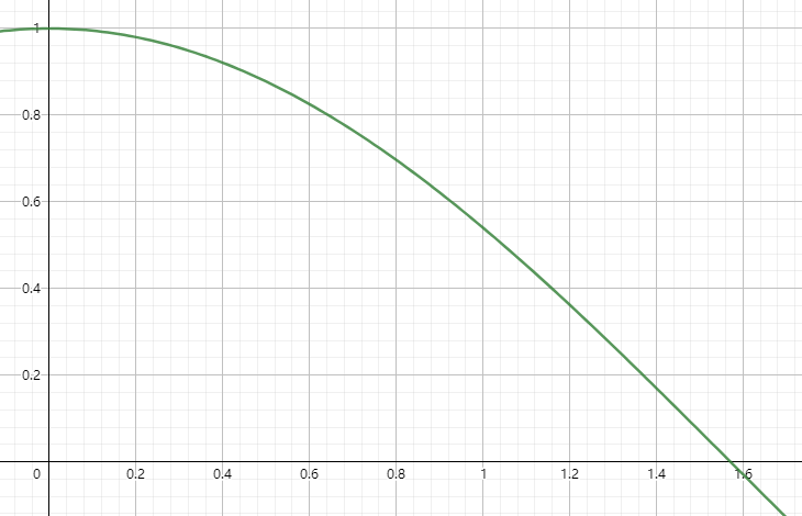 法线方向 和 灯光方向 的 点积 可以描述 漫反射 的强度,而 单位向量的点积 其实就是 向量夹角的cos值,考虑一下下图的 cos曲线: