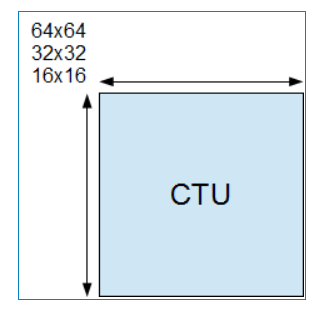 对于一个LxL的CTU,包括一个LxL的亮度CTB和两个L/2 x L/2的色度CTB,L的值可以等于16、32或64,由SPS中指定的编码语法元素确定。