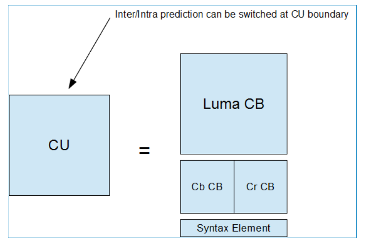 TU由亮度TB和两个色度TB及相应的语法元素组成,TU是进行变换和量化的基本单元。