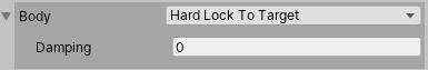 Pitch Damping:相机在x轴旋转的阻力系数。较小的数字会使相机反应更快。较大的数字会使相机的反应速度变慢。 Binding Mode为Lock to Target No Roll、Lock to Target时可用。