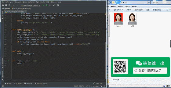 安装好了需要的工具模块后,就可以开始编写代码了。证件照换底色使用的主要代码也就十行左右。