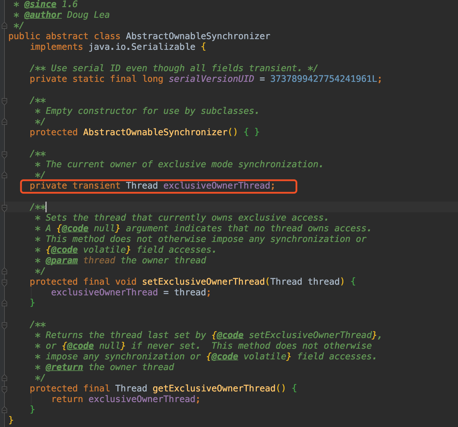 AbstractOwnableSynchronizer中使用exclusiveOwnerThread存储独占锁的锁拥有者。