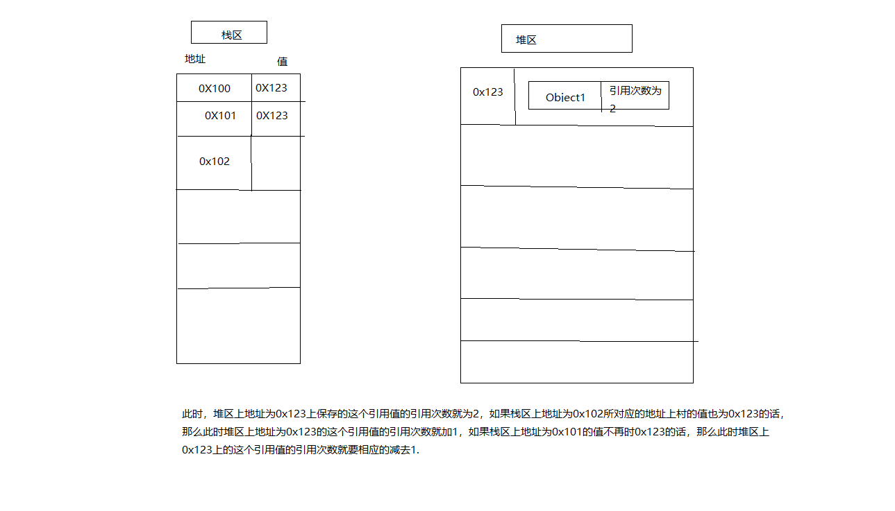跟踪记录每一个值的引用次数,当声明了一个变量并将一个引用类型值赋给该变量的时候,这个引用类型的引用次数就是1,如果同一个值又被赋值给另一个变量,这个值的引用次数加1.如果包含对这个值引用的变量又取得了另一个值,则这个值的引用次数减1,当这个值引用次数为0的时候,就可以将这个引用值所占的内存空间回收回来。