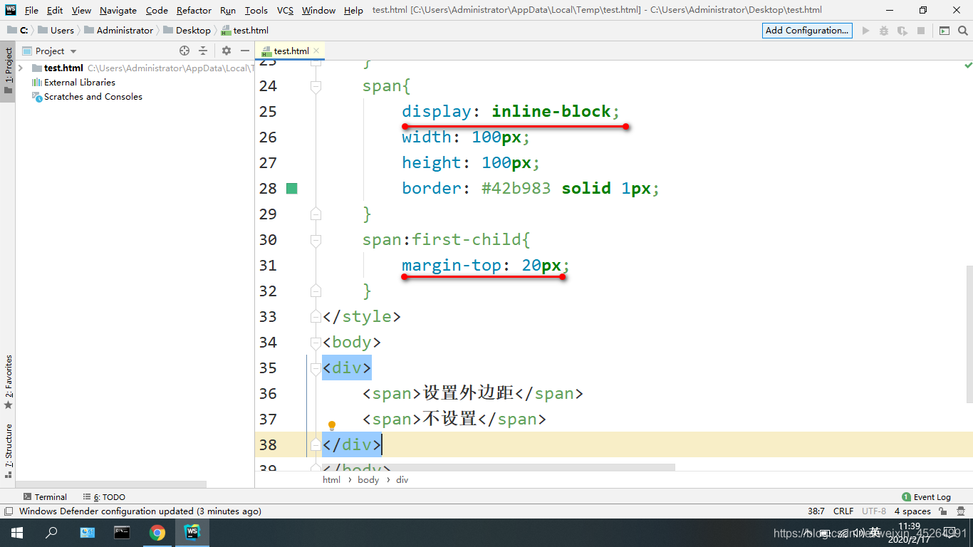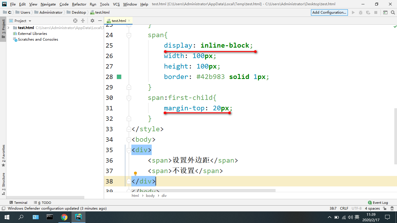 一个盒子里有两个行内块,其中一个设置了margin,另一个不设置,也会下沉,而且更低;