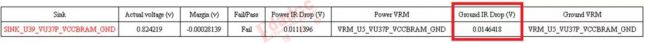 不难发现,随着GND平面的减少,GND平面上的直流压降随之增大,从而导致电源回路的整体压降恶化,最差的情况就是压降超标,所以仅保留一层GND平面时,回路路径的压降达到53.5mV也就不足为奇了。原理很简单:电源回路的直流压降分为两个部分,除了电源路径上的压降,还要考虑回流路径上的压降,二者的处理同等重要。