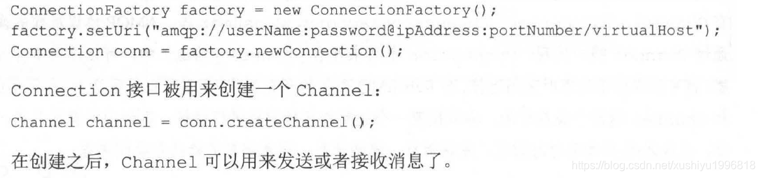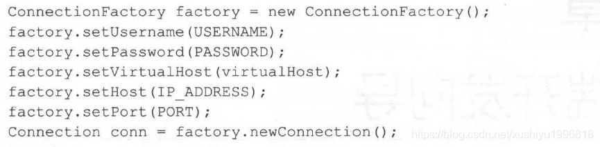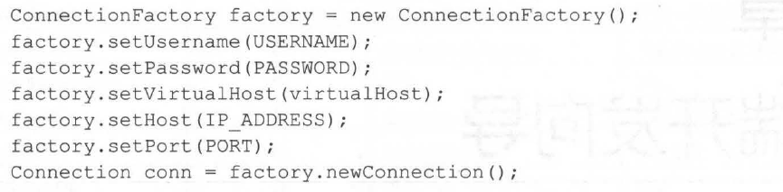 下面的代码(代码清单)用来在给定的参数(IP地址、端口号、用户名、密码等)下 连接RabbitMQ: