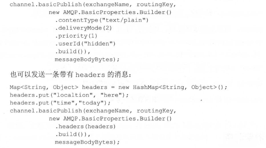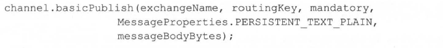 (3) void basicPublish(String exchange, String routingKey, boolean mandatory, boolean immediate, BasicPro:perties :pro:ps, byte[] body) throws IOExce:ption;