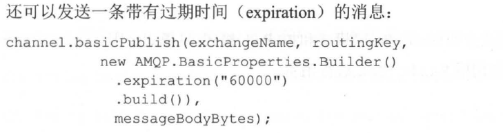 将channel.basicReject或者channel.basicNack中的requeue设置为false, 可 以启用“死信队列"的功能。死信队列可以通过检测被拒绝或者未送达的消息来追踪问题。