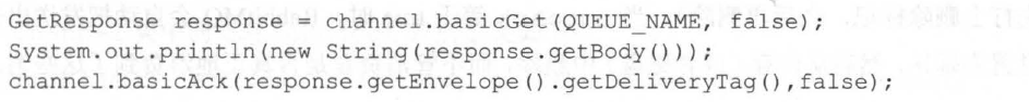 这里讲一下拉模式的消费方式。通过channel.basicGet方法可以单条地获取消息,其 返回值是GetRespone。Channel类的basicGet方法没有其他重载方法,只有: