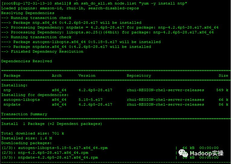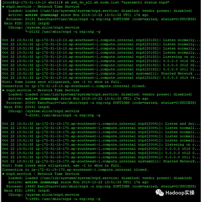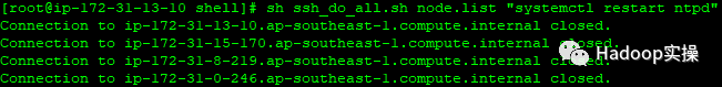 [root@ ip-172-31-13-10 shell]# sh ssh_do_all.sh node.list "systemctl restart ntpd"