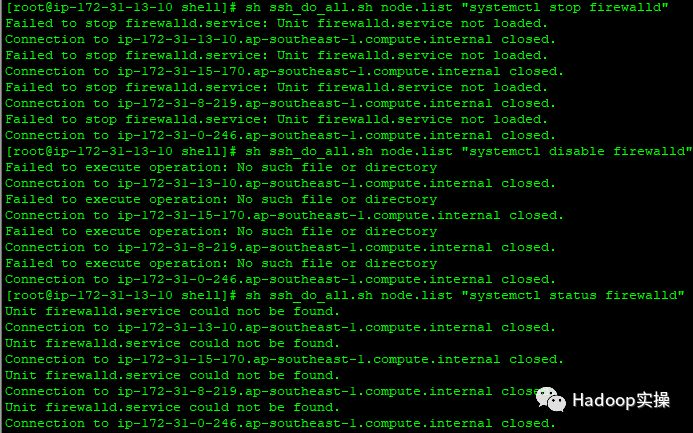 [root@ip-172-31-13-10 shell]# sh ssh_do_all.sh node.list "systemctl disable firewalld"
